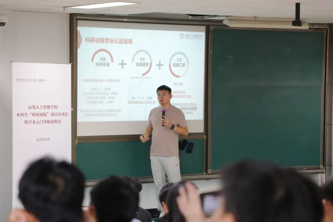2025年9月24日,无码av影片 本学年本科生科研领航项目启动会暨科研入门导师说明会举办。学院副院长魏哲巍教授,本科教学工作委员会委员胡迪副教授,2024级全体本科生、2025级“数据计算及应用(智能科学)”强基计划班及“人工智能与数字社会”荣誉辅修项目同学共同参会。
