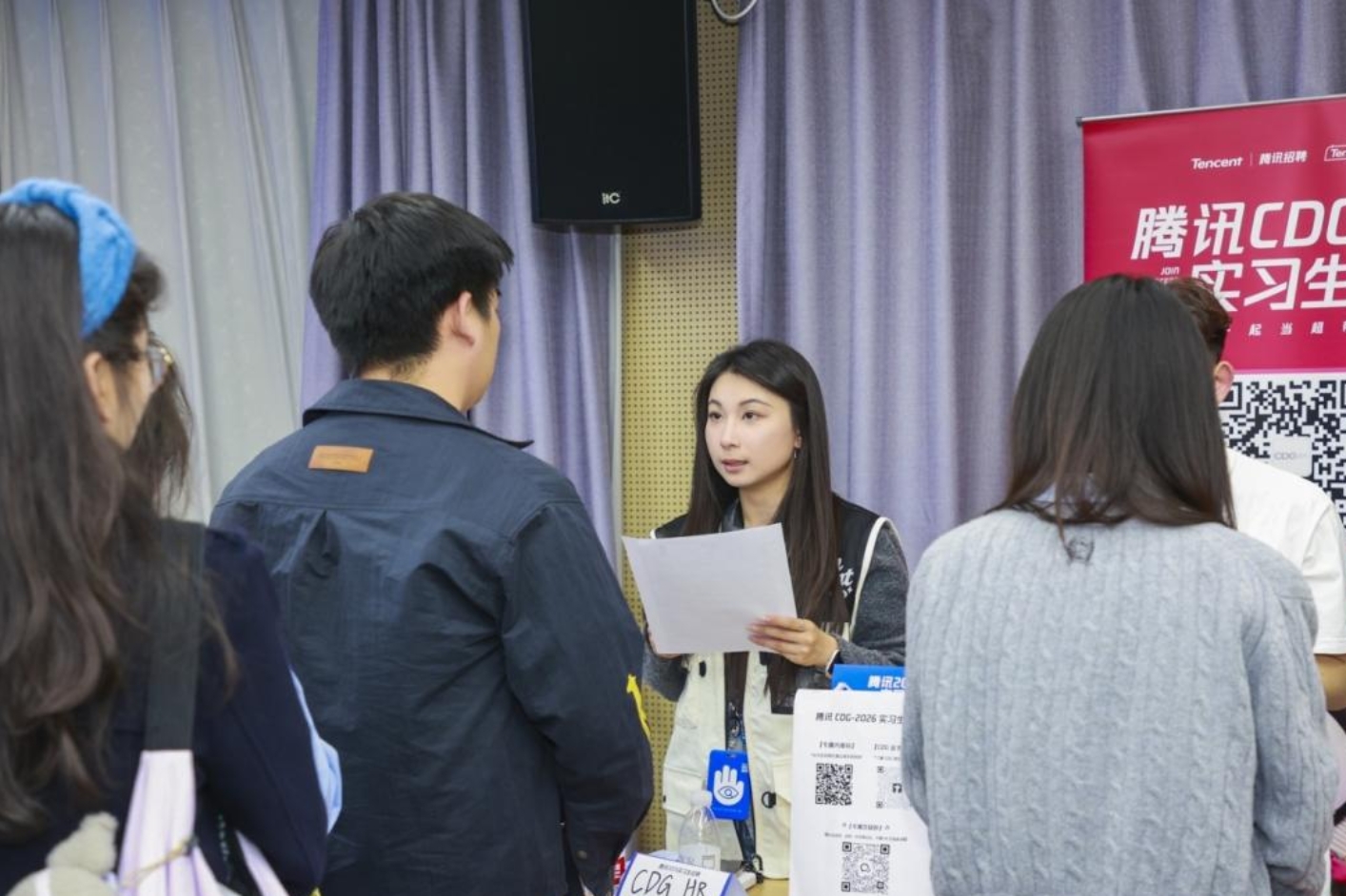 宣讲会上,腾讯嘉宾带来全方位的企业解读与求职指导。各位代表结合自身职业发展历程,系统介绍了公司组织架构与核心业务产品。针对学生最为关切的校园招聘事宜,相关负责人详细阐述了网申投递渠道、招聘流程及人才培养机制,为学生提供了清晰、实用的求职指引。