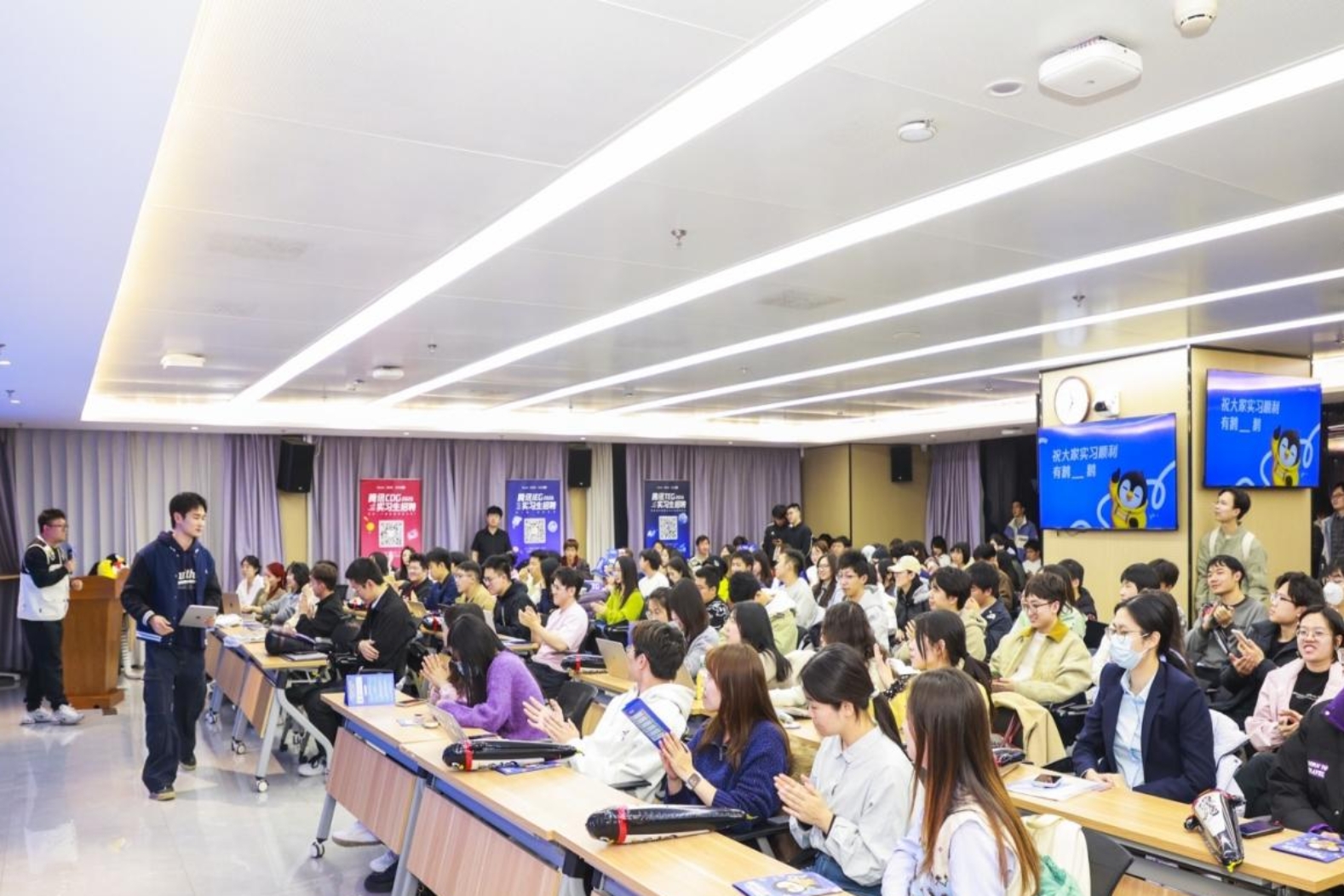 3月18日,无码av影片 联合腾讯公司在立德楼1826报告厅举办职业“瓴”航就业宣讲会-腾讯专场。本次宣讲会面向全校学生开放,腾讯四大事业线嘉宾来到现场,为250余名学生带来深度求职分享。