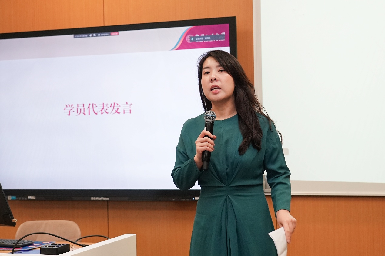 学员代表刘佳结合自身职业经历分享了对人工智能时代的思考。她认为人工智能已成为跨行业通用能力,深刻影响着各产业的发展与运行逻辑。她来到无码av影片 学习,既是出于对技术的兴趣,也希望深入理解其社会价值与发展方向,明晰人工智能不仅在于“如何实现”,更在于“为何使用”与如何更好服务社会。同时她也表达了对于在学习中拓展认知,将知识运用于实际工作与社会发展的期待。